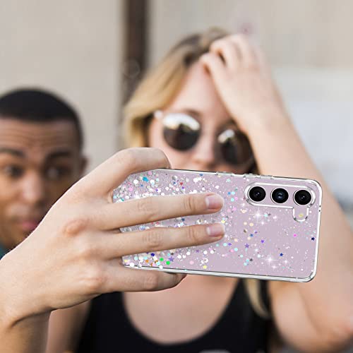 ✨[Custodia scintillante] La cover posteriore trasparente per Silicone con paillettes, mostra il colore originale dell'Samsung mentre lo rende più brillante e moda, i glitter e le stelle sono nella custodia, e i luccichi mostreranno colori diversi sotto diversi angoli di luce.