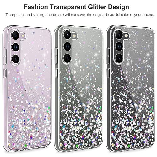 Ivencase Cover Compatibile con Samsung Galaxy S23 5G con 2 Pezzi Vetro Temperato, Crystal Silicone Glitter Trasparente Paillettes Case Antiurto Custodia con Paraurti in TPU Morbido