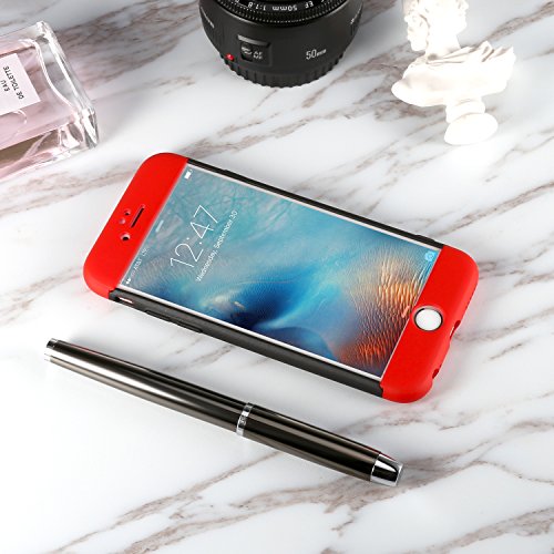 Ivencase Cover iPhone 6 Custodia iPhone 6S Premio Ibrido Rugged 3 in 1 Duro AntiGraffio Macchia PC Custodia + Pellicola Vetro Temperato Protettiva per Apple iPhone 6/6S 4.7" Cover Nero + Rosso
