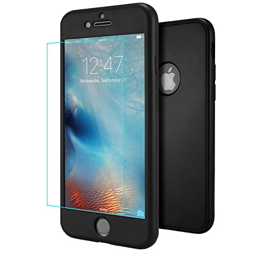 Ivencase Cover iPhone 6 Plus Ultra Sottile 3 in 1 Design Front Cover & Indietro Caso & Vetro Film Silicone Gel Case con [Tempered Glass Pellicola Protettiva] per iPhone 6S Plus/iPhone 6 Plus Nero