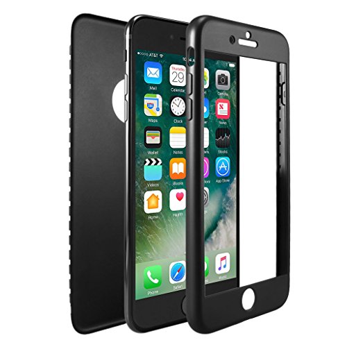 Ivencase Cover iPhone 7 Plus Ultra Sottile 3 in 1 Design Front Cover & Indietro Caso & Vetro Film Silicone Gel Case con [Tempered Glass Pellicola Protettiva] per iPhone 7 Plus Nero