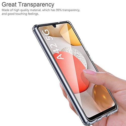 Ivencase Cover Ultra Hybrid Compatibile con Samsung Galaxy A42 5G con 2 Pezzi Vetro Temperato, Anti-Ingiallimento Hard PC Retro, Paraurti Flessibile Cover Antiurto - Trasparente