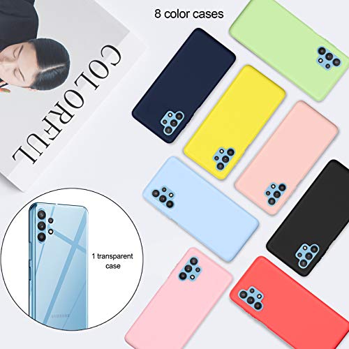 Ivencase 9 Pack Custodia Compatibile con Samsung Galaxy A32 5G Cover Silicone Morbido TPU Protettivo Cover Samsung Galaxy A32 5G Rosa, Verde,Porpora,Rosa Chiaro,Giallo,Rosso,Blu Scuro,Traslucido, Nero