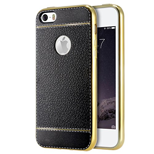Ivencase Custodia iPhone SE / 5 / 5S Nero Elegante Ultra Sottile Struttura di Cuoio Flessibile TPU Ibrida Resistente ai Graffi Protecttiva Case Cover per iPhone SE / 5 / 5S