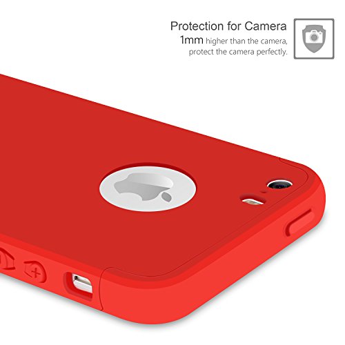 Ivencase iPhone 5 Cover Custodia iPhone 5S/iPhone SE Case Premio Ibrido Rugged 3 in 1 Duro AntiGraffio Macchia PC + Pellicola Vetro Temperato Protettiva Case per Apple iPhone 5/5S/SE 4.0" Rosso