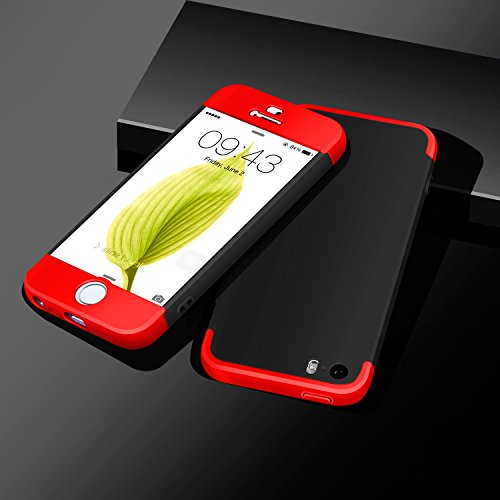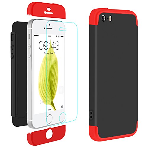 Ivencase iPhone 5 Cover Custodia iPhone 5S / iPhone SE Case 3 in 1 Duro AntiGraffio Macchia PC Custodia + Pellicola Vetro Temperato Protettiva per iPhone SE/5/5S 4.0" Nero + Rosso