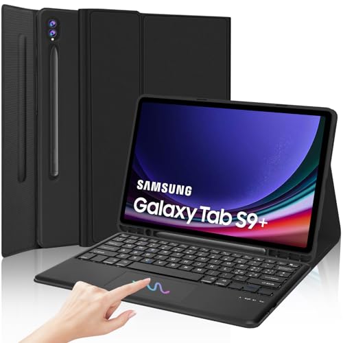 IVEOPPE Tastiera Samsung Galaxy Tab S9 Plus 12.4" 2023 - Samsung Tab S9 FE Plus Tastiera, Cover Tastiera Tablet Samsung tab S9 Plus, Tastiera Italiano Bluetooth Rimovibile per Samsung Tab S9+, Nero