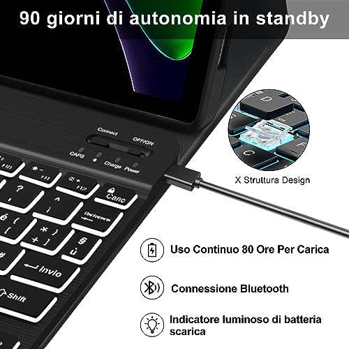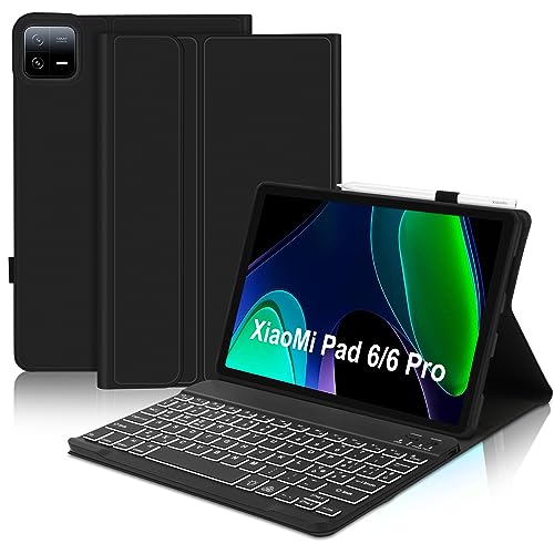 IVEOPPE Tastiera Xiaomi Pad 6/6 Pro - Cover Tastiera Magnetica Bluetooth Backlit Retroilluminata Staccabile, Layout Italiano, Custodia Tastiera Protettiva per iPad Xiaomi Pad 6 2023, Nero