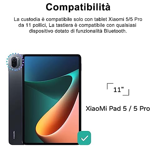 Tastiera Xiaomi 5/5Pro: la custodia con tastiera è appositamente progettata per Xiaomi Pad 5/Xiaomi Pad 5 Pro (11 pollici, 2021). NON compatibile con altri modelli. Si prega di controllare il modello prima dell'acquisto. ( Stilo non incluso. )