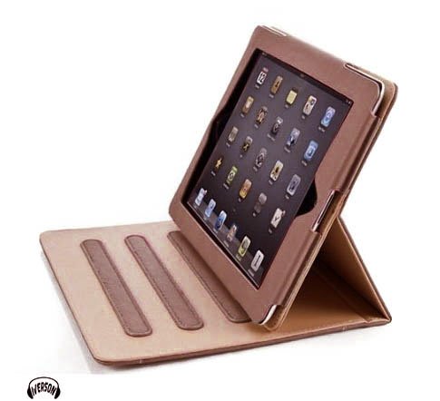 Iverson - Custodia a portafoglio in pelle per iPad 4, compatibile con iPad 2 e iPad 3, con pellicola proteggi schermo e panno per la pulizia, colore: Cioccolato
