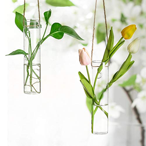 Ivolador Vaso da fiori in vetro da appendere, per piante idroponiche, decorazione per casa e giardino (2 cilindri)