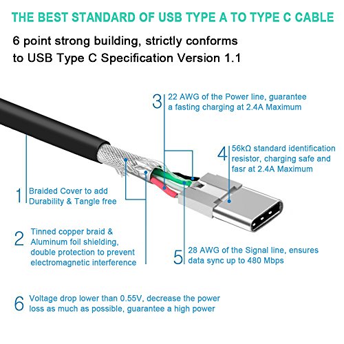 IVoler [2-Pack] USB Type C Cavo, [3.3ft/1m] USB 2.0 USB C a USB A Tipo C Cavo Ricarica Rapida Trasferimento Dati Cavo di Sincronizzazione per Mobile e Altri Dispositivi con Porta Type C