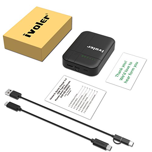 IVoler Caricabatterie Portatile 10000mAh Quick Charge 3.0 USB-C Power Bank [QC 3.0 Porta Uscita + Type-C Porta 5V/3A Max Ingresso & Uscita] Batteria Esterna per Nintendo Switch, iPhone X / 8 (Plus) /7 (Plus) /6 6S (Plus) / SE / 5S, Nexus 6P/5X, Samsung Galaxy S9/S9 Plus/S8/S8+/S7/S7 Edge/S6, LG G6/G5, Google Pixel / XL, Lumia 950/950 XL e Altro Smartphone