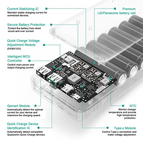 Quick Charge 3.0 Tecnologia: il primo caricatore portatile con QC 3.0 carica la tecnologia fino al 80% della batteria per QC 2.0 / 3.0 dispositivi compatibili durante la carica per circa 35 minuti. QC 3.0 è compatibile con QC 2.0 e 1.0;