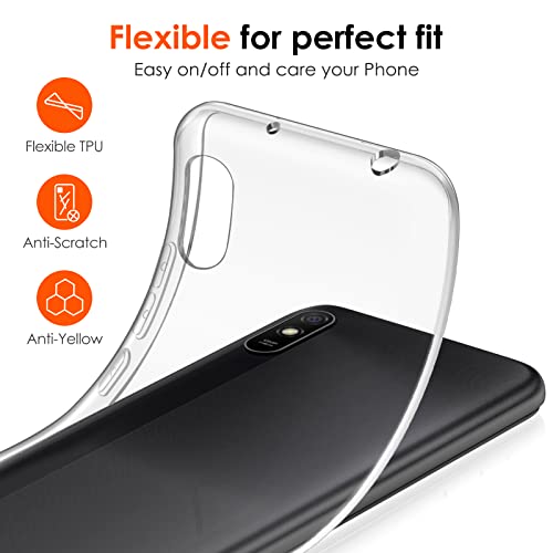 IVoler Chiaro Cover per Xiaomi Redmi 9A / Xiaomi Redmi 9AT, Custodia Trasparente con Paraurti Assorbimento degli Urti, Ultra Sottile Morbida in Silicone TPU Antiurto Protettiva Case