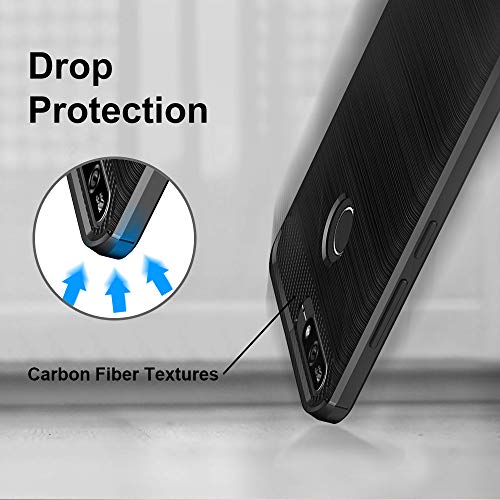IVoler Cover per Huawei Y6 2018 / Honor 7A con 3 Pezzi Pellicola Vetro Temperato, Fibra di Carbonio Nero Custodia in Morbida Silicone TPU Anti-Graffio Antiurto Protettiva Case