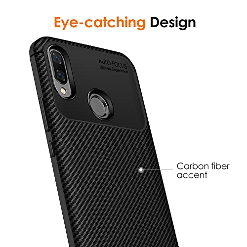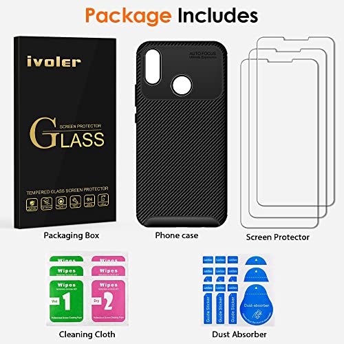 IVoler Cover per Huawei P Smart+ 2018 / Huawei P Smart Plus 2018, con 3 Pezzi Pellicola Vetro Temperato, Fibra di Carbonio Custodia in Morbida Silicone TPU Anti-Graffio Antiurto Protettiva Case - Nero