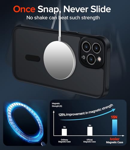 IVoler Cover Magnetica per iPhone 15 Pro Max 6.7 Pollici, [Compatibile con MagSafe] [Protezione Antiurto di Grado Militare] Custodia Traslucida Opaca Posteriore Sottile Silicone Protettiva Case
