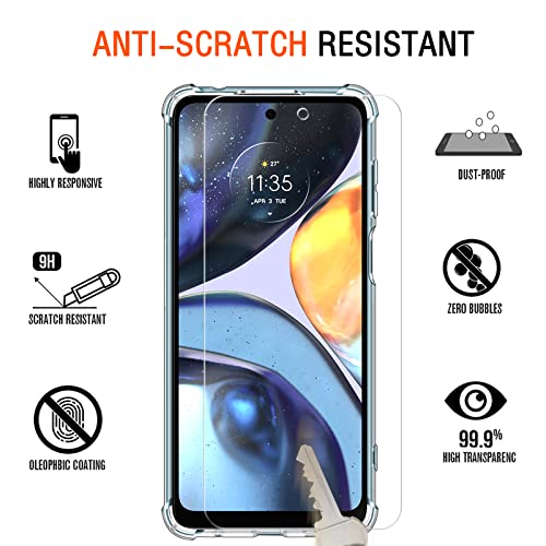 IVoler Cover per Motorola Moto G22 / Moto E32s, Antiurto Custodia con Paraurti in TPU Morbido e 3 Pezzi Pellicola Vetro Temperato, Ultra Sottile Trasparente Silicone Protettiva Case