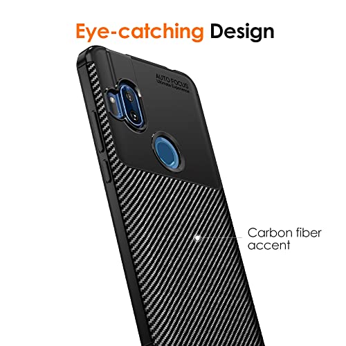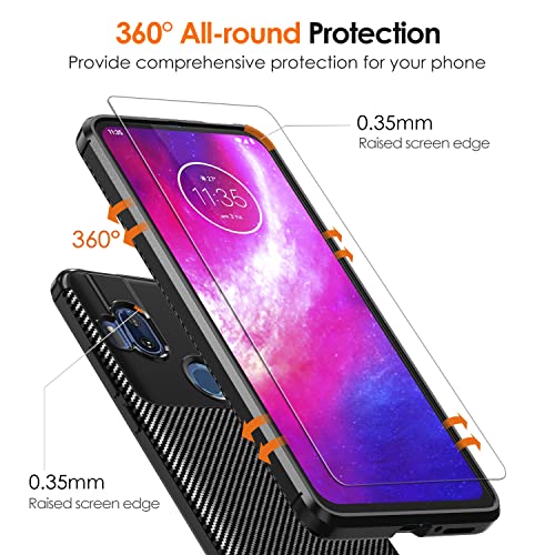 IVoler Cover per Motorola Moto One Hyper, con 3 Pezzi Pellicola Vetro Temperato, Fibra di Carbonio Custodia in Morbida Silicone TPU Anti-Graffio Antiurto Protettiva Case - Nero