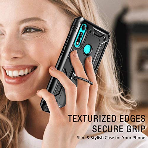 IVoler Cover per Motorola Moto G8 Power Lite con 3 Pezzi Pellicola Vetro Temperato, Grado Militare Custodia Protezione con Anello Ruotabile Cavalletto, Antiurto TPU Bumper Case - Nero