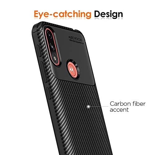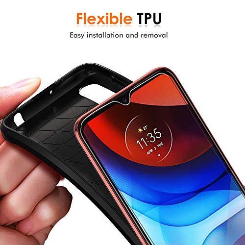 IVoler Cover per Motorola Moto E7 Power/Moto E7i Power, con 3 Pezzi Pellicola Vetro Temperato, Fibra di Carbonio Custodia in Morbida Silicone TPU Anti-Graffio Antiurto Protettiva Case - Nero