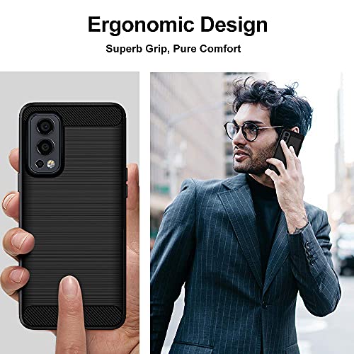 IVoler Cover per OnePlus Nord2 5G / OnePlus Nord 2 5G con 3 Pezzi Pellicola Vetro Temperato, Fibra di Carbonio Nero Custodia in Morbida Silicone TPU Anti-Graffio Antiurto Protettiva Case