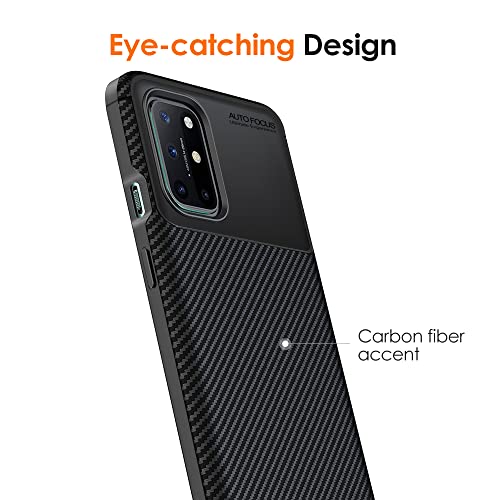 IVoler Cover per OnePlus 9R / OnePlus 8T, con 3 Pezzi Pellicola Vetro Temperato, Fibra di Carbonio Custodia in Morbida Silicone TPU Anti-Graffio Antiurto Protettiva Case - Nero