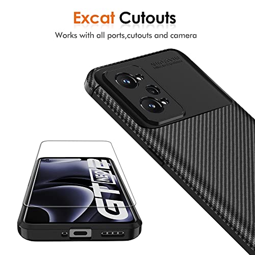 IVoler Cover per Realme GT Neo 3T / Realme GT Neo 2 / Realme GT 2, con 3 Pezzi Pellicola Vetro Temperato, Fibra di Carbonio Custodia in Morbida Silicone TPU Antiurto Protettiva Case - Nero