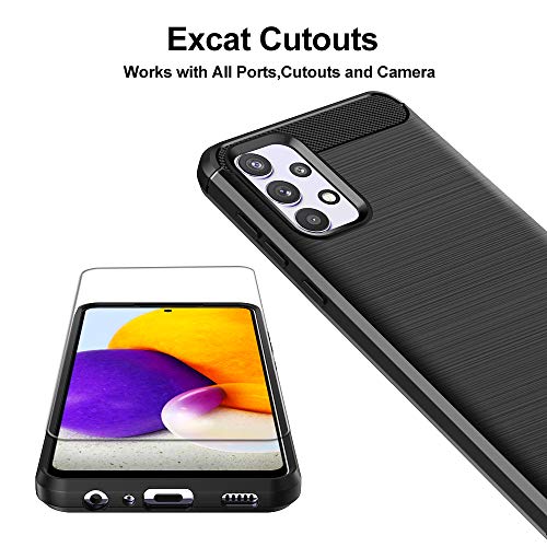 IVoler Cover per Samsung Galaxy A72 4G / 5G con 3 Pezzi Pellicola Vetro Temperato, Fibra di Carbonio Nero Custodia in Morbida Silicone TPU Anti-Graffio Antiurto Protettiva Case