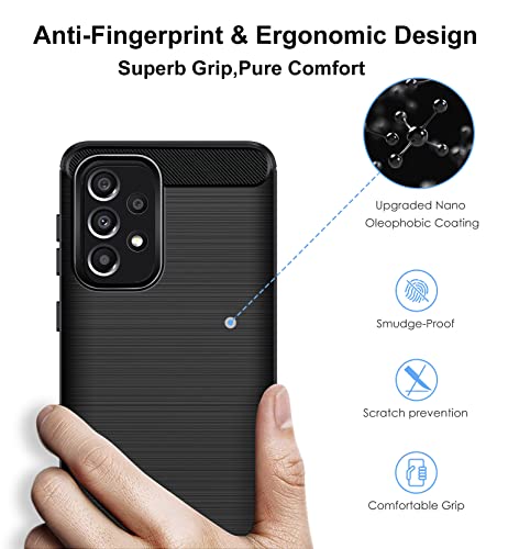 IVoler Cover per Samsung Galaxy A33 5G con 3 Pezzi Pellicola Vetro Temperato, Fibra di Carbonio Nero Custodia in Morbida Silicone TPU Anti-Graffio Antiurto Protettiva Case