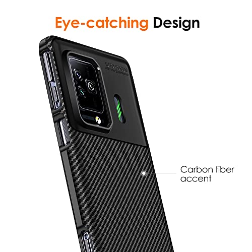 IVoler Cover per Xiaomi Black Shark 5 / Xiaomi Black Shark 5 Pro, con 3 Pezzi Pellicola Vetro Temperato, Fibra di Carbonio Custodia in Morbida Silicone TPU Anti-Graffio Antiurto Protettiva Case - Nero