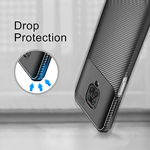 IVoler Cover per Xiaomi Redmi Note 9S / Xiaomi Redmi Note 9 PRO, con 3 Pezzi Pellicola Vetro Temperato, Fibra di Carbonio Custodia in Morbida Silicone TPU Anti-Graffio Antiurto Protettiva Case - Nero