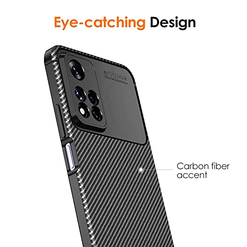 IVoler Cover per Xiaomi Redmi Note 11 Pro+ / Xiaomi Redmi Note 11 Pro Plus 5G, con 3 Pezzi Pellicola Vetro Temperato, Fibra di Carbonio Custodia in Morbida Silicone TPU Antiurto Protettiva Case - Nero