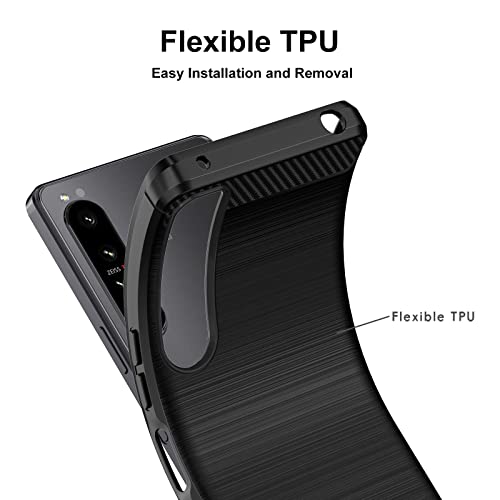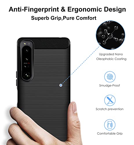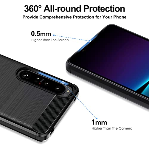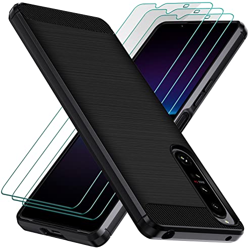 IVoler Cover per Sony Xperia 1 IV con 3 Pezzi Pellicola Vetro Temperato, Fibra di Carbonio Nero Custodia in Morbida Silicone TPU Anti-Graffio Antiurto Protettiva Case