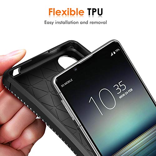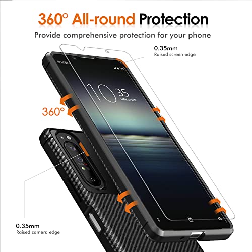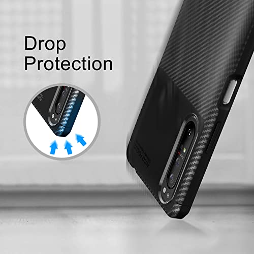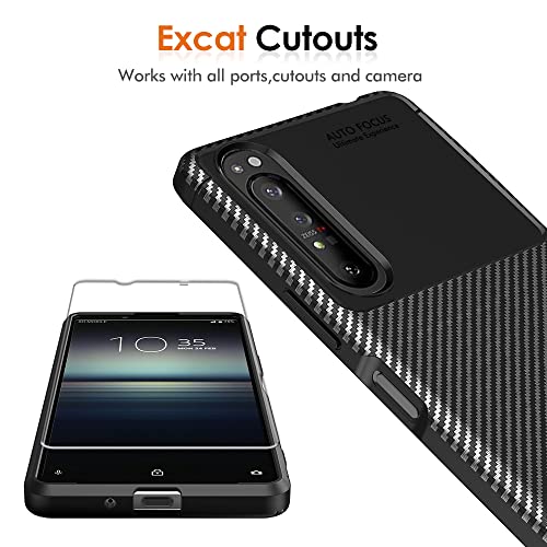 IVoler Cover per Sony Xperia 1 II, con 3 Pezzi Pellicola Vetro Temperato, Fibra di Carbonio Custodia in Morbida Silicone TPU Anti-Graffio Antiurto Protettiva Case - Nero