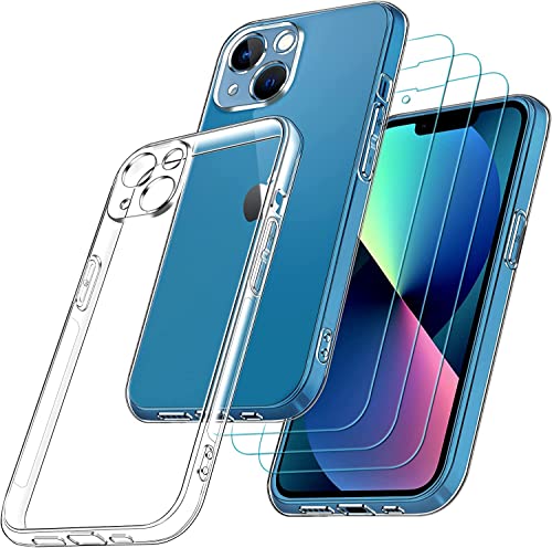 IVoler Custodia Cover Compatibile con iPhone 13 6.1 Pollici con Camera Protection e 3 Pezzi Pellicola Vetro Temperato, Ultra Sottile Morbido TPU Trasparente Silicone Antiurto Protettiva Case
