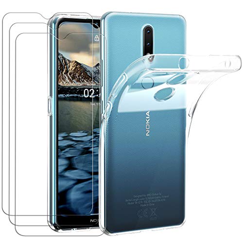 IVoler Custodia Cover per Nokia 2.4 con 3 Pezzi Pellicola Vetro Temperato, Ultra Sottile Morbido TPU Trasparente Silicone Antiurto Protettiva Case