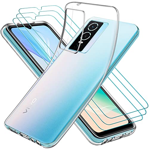IVoler Custodia Cover per Vivo Y76 5G con 3 Pezzi Pellicola Vetro Temperato, Ultra Sottile Morbido TPU Trasparente Silicone Antiurto Protettiva Case