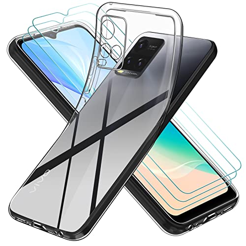 IVoler Custodia Cover per Vivo Y21 / Vivo Y21s / Vivo Y33s con 3 Pezzi Pellicola Vetro Temperato, Ultra Sottile Morbido TPU Trasparente Silicone Antiurto Protettiva Case