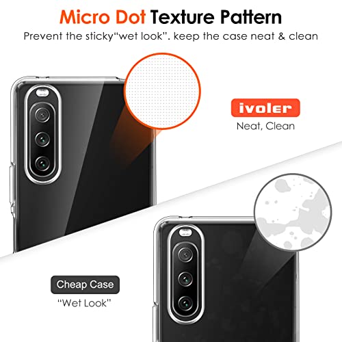 IVoler Custodia Cover per Sony Xperia 10 II con 3 Pezzi Pellicola Vetro Temperato, Ultra Sottile Morbido TPU Trasparente Silicone Antiurto Protettiva Case