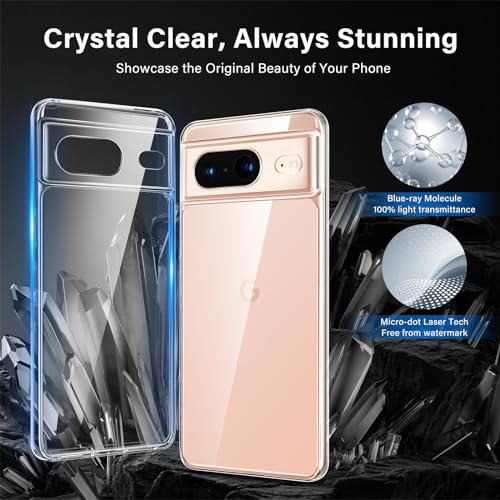 IVoler Anti Ingiallimento Chiaro Cover per Google Pixel 8, [Protezione Fotocamera] Trasparente Sottile Antiurto Custodia Case con Paraurti Assorbimento degli urti
