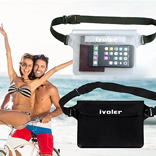 IVoler [2 Pezzi] Borsa Impermeabile Custodia Impermeabile con Cintura Vita per Cellulari, Fotocamera, Portafoglio, Sacca Impermeabile Marsupio per Sport Pesca Vela Escursione (Nero+Trasparente)