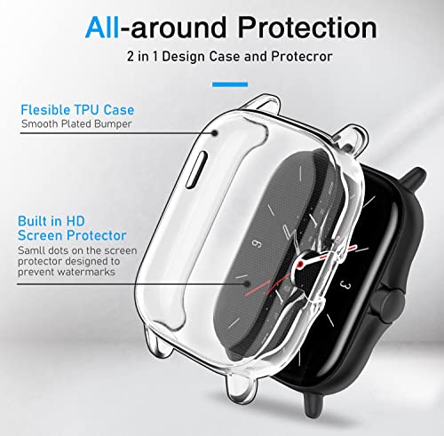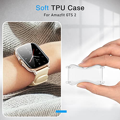 IVoler 3 Pezzi Cover e Pellicola Protettiva per Amazfit GTS 2 / Amazfit GTS 2e, Copertura Completa Custodia Trasparente, Ultra Sottile Morbida TPU Anti-Graffio Protezione Schermo Antiurto Case