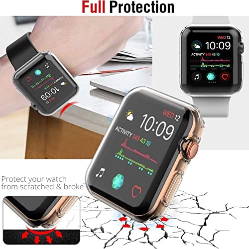 IVoler 3 Pezzi Cover e Pellicola Protettiva per Apple Watch 44mm SE 2 (2022) SE (2020) Series 6 5 4, Copertura Completa Custodia Trasparente, Sottile Morbida TPU Protezione Schermo Anti-Graffio Case