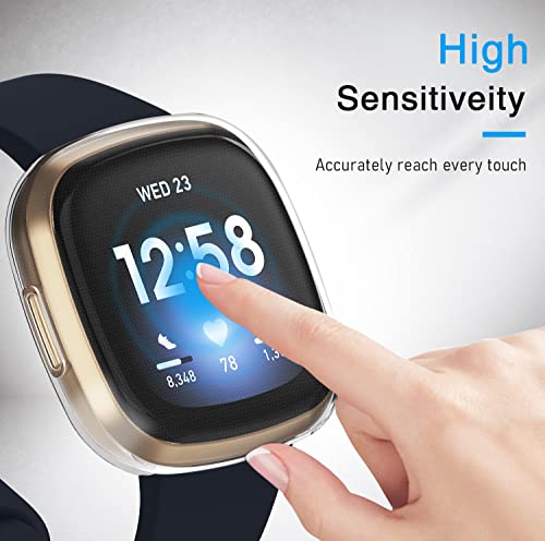 IVoler 3 Pezzi Cover e Pellicola Protettiva per Fitbit Versa 3 / Fitbit Sense, Copertura Completa Custodia Trasparente, Ultra Sottile Morbida TPU Anti-Graffio Protezione Schermo Antiurto Case