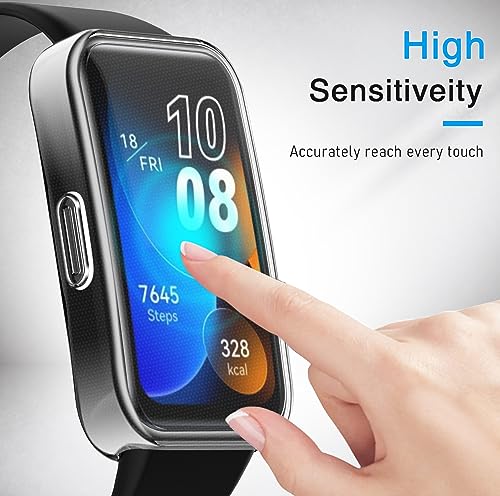 Modello Compatibile - Queste protezioni per lo schermo compatibili solo con Huawei Band 8 / Huawei Band 8 NFC, Non compatibile con altri modelli, Si prega di controllare il modello di orologio prima di acquistare. Custodia trasparente, protezione schermo HD. Offrono un'esperienza visiva naturale.