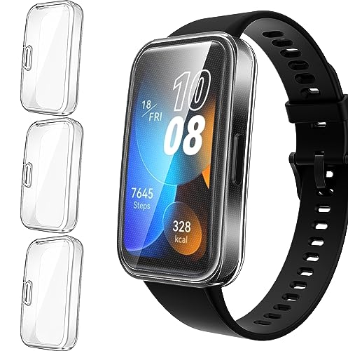 IVoler 3 Pezzi Cover e Pellicola Protettiva per Huawei Band 8 / Huawei Band 8 NFC, Copertura Completa Custodia Trasparente, Ultra Sottile Morbida TPU Anti-Graffio Protezione Schermo Antiurto Case