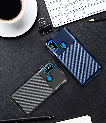 IVoler 2 Pezzi Cover per Samsung Galaxy M30S / M21, [Fibra di Carbonio] Custodia Protezione in Morbida Silicone TPU Antiurto Protettiva Case Cover (Nero+Blu)