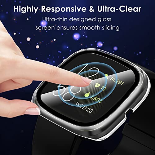 IVoler 3 Pezzi Cover con Vetro Temperato per Fitbit Versa 2, Copertura Completa Custodia Rigida PC, HD Clear Pellicola Protettiva Anti-Graffio Case, 2 Trasparente + 1 Nero